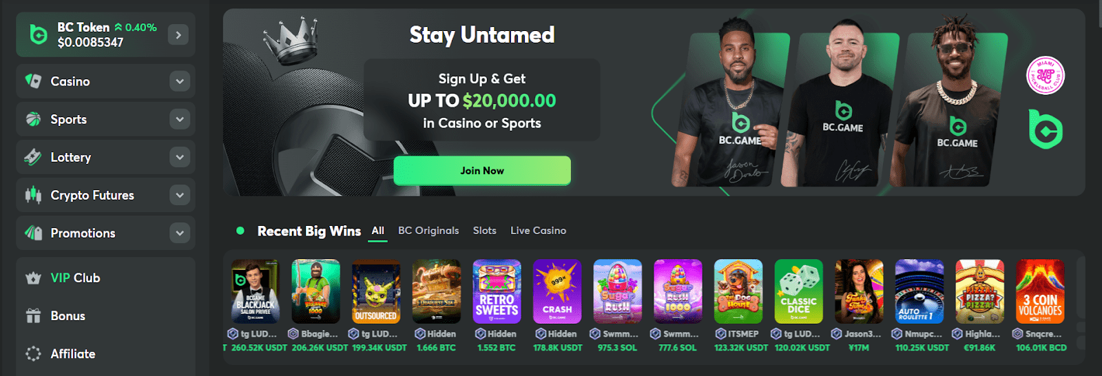 Everyone’s heard of BC.Game, right? Since it launched in 2017, it’s become one of the biggest names in crypto gambling, known for its smooth, easy-to-use interface and huge library of about 9,000 games. You’ll find everything there from slots, table games, poker, bingo, lottery, and live dealer tables, to BC.Game’s own provably fair originals.