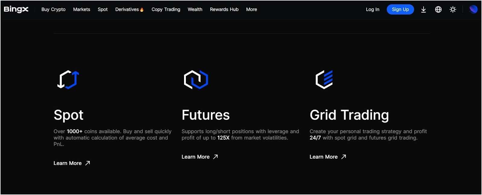 BingX is a crypto exchange that mainly focuses on simplicity and the social trading part. Here, you are going to find the interface clean and easy to use and without any overwhelming charts or clutter. Well, this platform is also a great option if you’re relatively new to trading and want to learn by watching or automatically copying the trades of more experienced users. Plus, they are also pretty focused on derivatives, so they offer both standard and perpetual futures contracts.