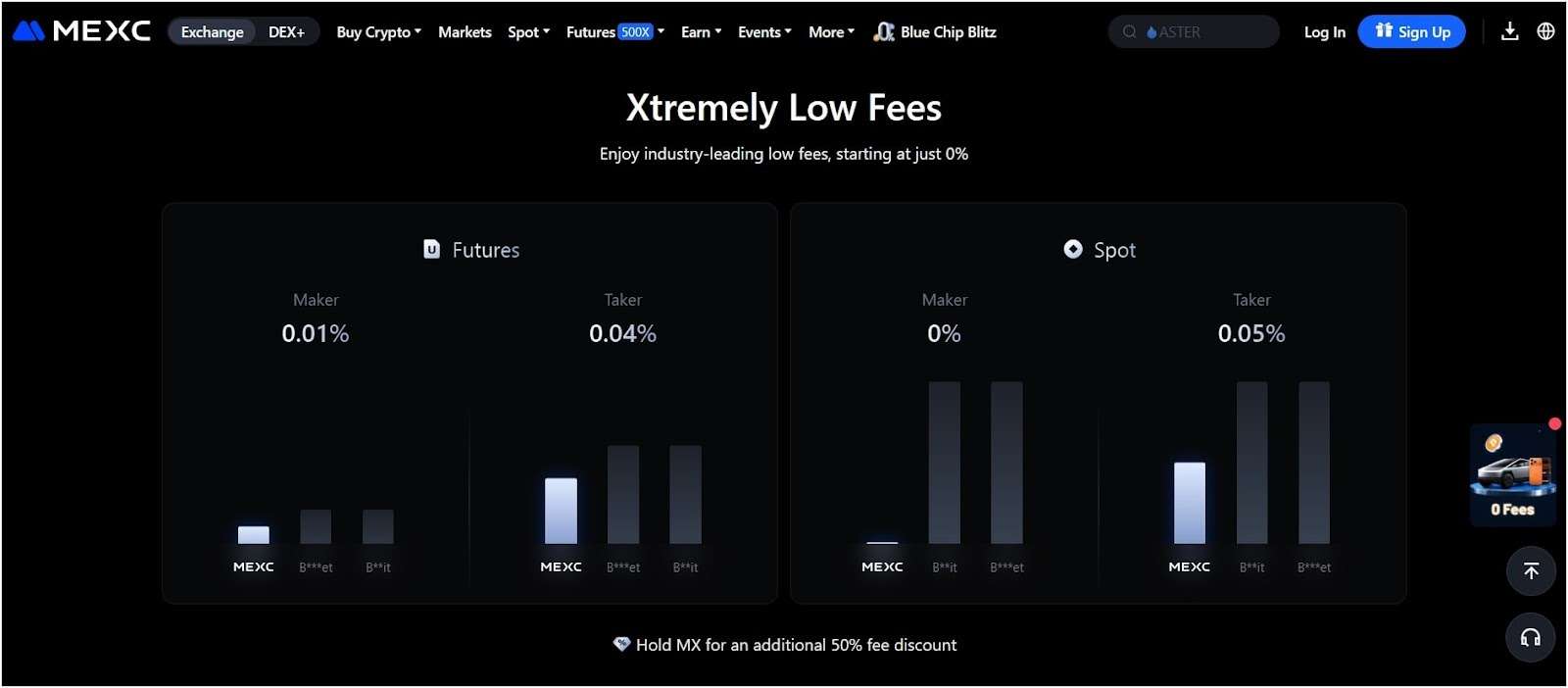 MEXC is an exchange that is basically best in listing a huge number of new altcoins, and it’s really popular for its low trading fees as well as no-KYC trading. Also, MEXC keeps platform costs down for you: makers pay 0% and takers just 0.05% on spot trades.