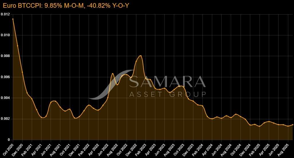 The Bitcoin Consumer Price Index (BTCCPI) measures the purchasing power of bitcoin in real-world terms. It tracks the cost of a fixed basket of goods and services in bitcoin rather than fiat currency. The result is a data-driven view of how much bitcoin it takes to live, spend, and consume over time. It is similar to the U.S. and European CPIs.
