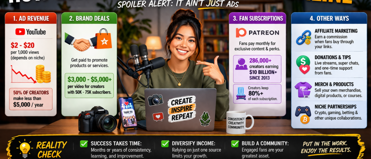 Content creators are out there making thousands of dollars every month through ads, brand deals, and subscriptions.