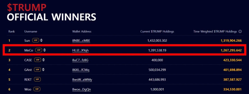 MemeCore’s marketing approach emphasizes community engagement through both online and offline initiatives. The “Trump Dinner” leaderboard campaign placed second in a $TRUMP token-based competition, involving a $17.5 million token purchase and over 3 million campaign participants.