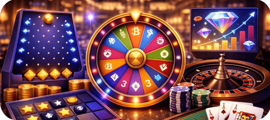 The Limbo Diamonds game introduces a fast-paced multiplier experience in which players decide when to cash out as the multiplier climbs. Meanwhile, Wheel of Fortune delivers instant-win excitement through high-potential spins, and the two Dice games allow straightforward high-low predictions with immediate results.