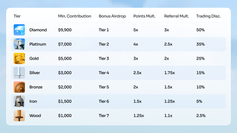 • Referral Multiplier: Lifetime bonus on trading fees from referred users