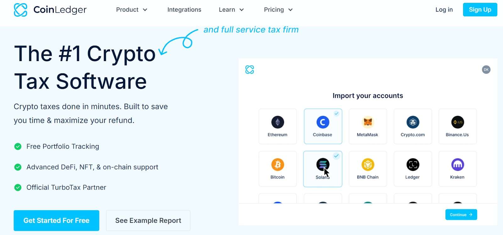 - Integration with top platforms: CoinLedger supports importing crypto transaction data from over 300 wallets, exchanges, and blockchains. Copy-paste your wallet address, and the platform will automatically calculate taxes for on-chain transactions.