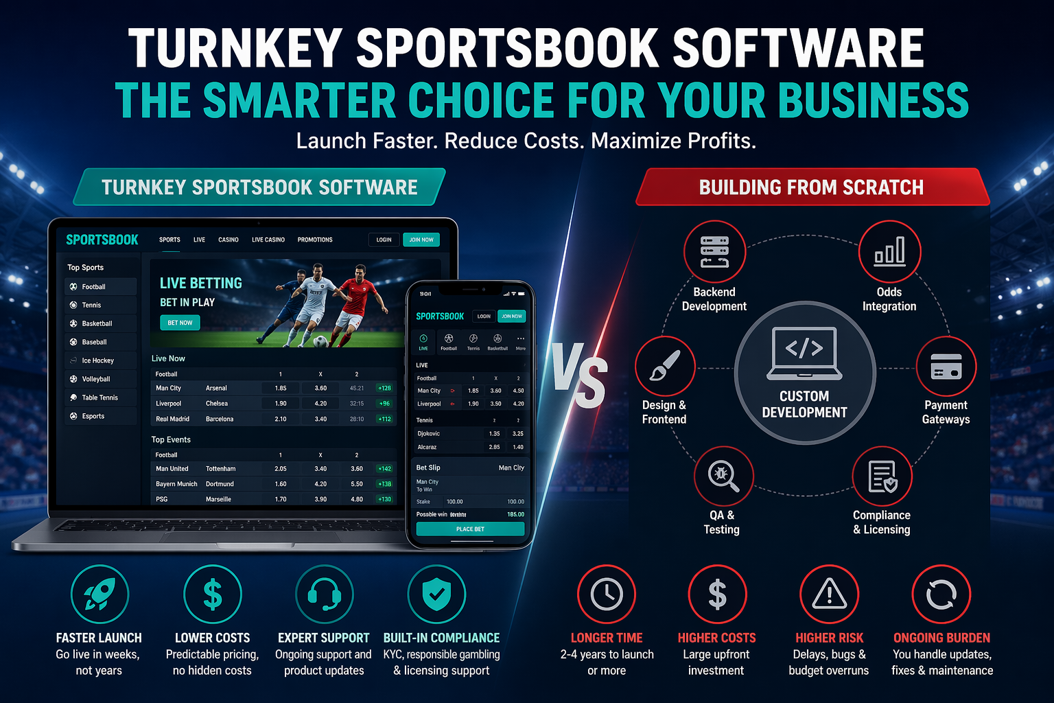 That difference in launch time has a direct financial impact. Every month you spend in development is a month you are not generating revenue. Sports betting markets are competitive and fast-moving. The operator who launches in month three has a clear edge over the one who launches in month thirty, regardless of how polished the custom-built product eventually becomes.