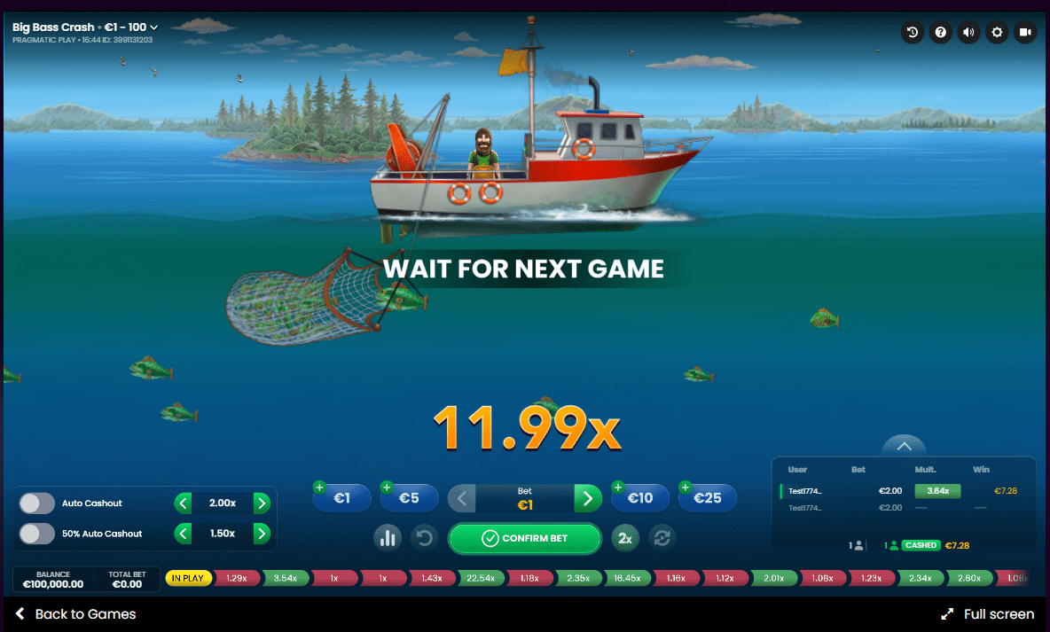 Players will first see a fisherman on a boat with a net. His target is to catch as many bass as he can. Players will have to make a bet before the round starts. After it begins, a 1.00x multiplier also appears. As the fisherman catches more bass, the multiplier rises. The main goal of this crypto game is to click the Cashout button before the net snaps and the round ends. Those who do that will secure the current multiplier. Those who do not will lose their bets.